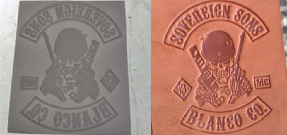 Customer may furnish a hand tooled piece of leather for us to replicate the design from. A tooled piece of leather is the best way to get the roll to look like the sample. We can use black and white designs, or an e-mailed file, or create one for you at an additional charge, but these will be made the way we translate the design to be.